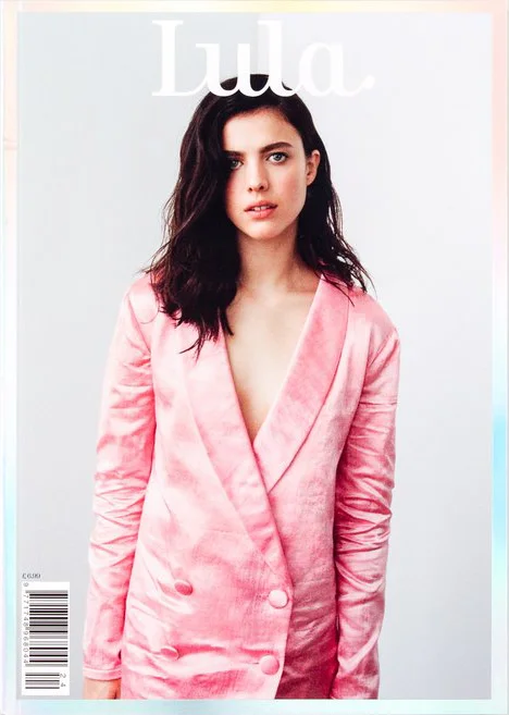 Margaret Qualley by Damon Heath for Lula No.24 SS 2017 Cover wearing TIGRA TIGRA MASHROO SMOKING SUIT, TEXAS PINK. Styled by Heidi Bivens.